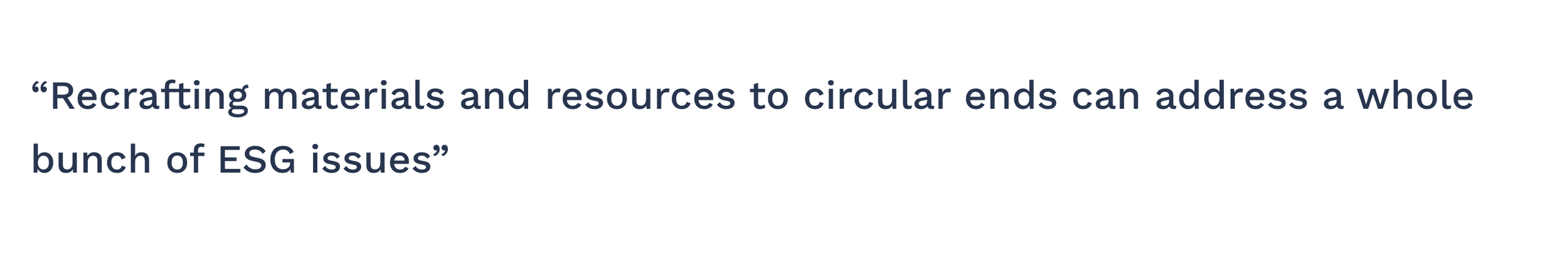 In other words, recrafting materials and resources to circular ends can address a whole bunch of ESG issues.